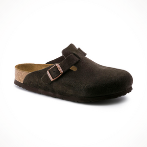 Birkenstock's most sought-after clog, the Boston lends a fashion-forward edge to any style. Velvety suede gives the laid-back look classic, every season appeal. Featuring an additional foam layer for cushioning, the soft footbed offers extra comfort plus go-all-day support.
