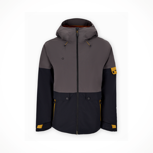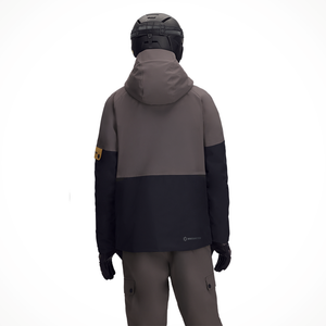 The Obermeyer A.M.F. (All Mountain Freeride) Jacket is a men's ski jacket designed for fearless freeride skiing. It features a rugged 20k/20k waterproof and breathability rating, insulation for warmth, and tech features like an adjustable, helmet-compatible hood and thumbhole cuffs .