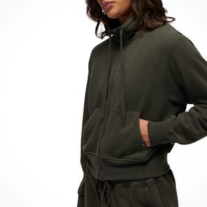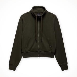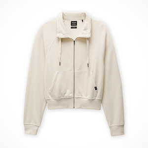 The prAna Cozy Up Full Zip is a women's classic full-zip jacket made from a soft, breathable hemp-blend fabric, featuring a mock neck, ribbed cuffs and waistband, and a kangaroo pocket. It is a versatile layer for everyday wear, offering natural odor resistance, UPF 50+ sun protection, and long-lasting quality from its hemp, recycled polyester, and TENCEL™ Lyocell blend.